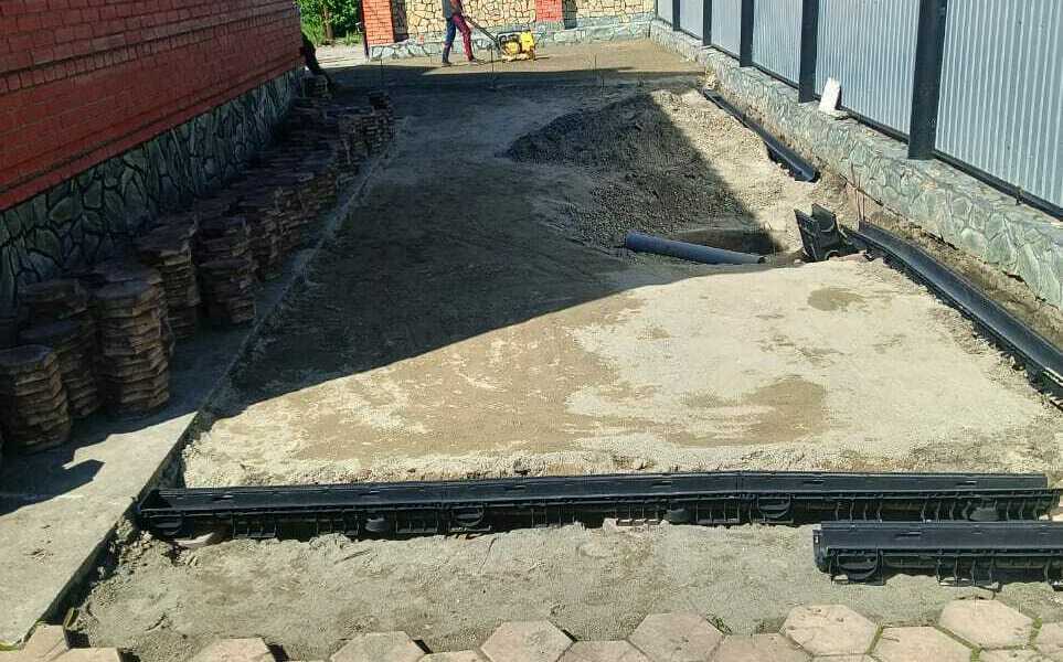 Устройство мощения с ливневой канализацией и дренажным колодцем